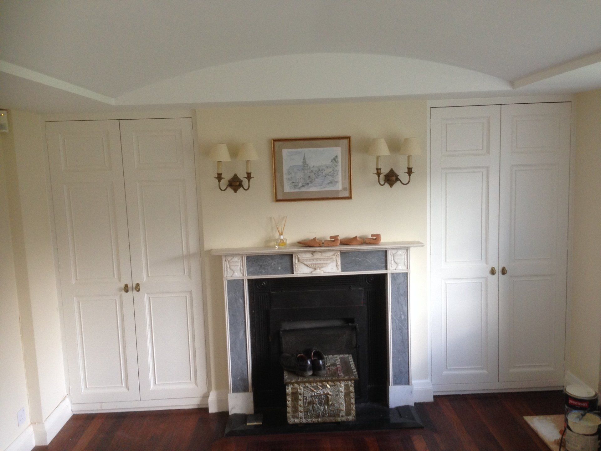 Below is oak handrails, newel posts and spindles. Also some hand built cupboards to fit the period of the building. Also we have created, from fire mantels to built in Cabinets and radiator covers to match existing joinery and mouldings.