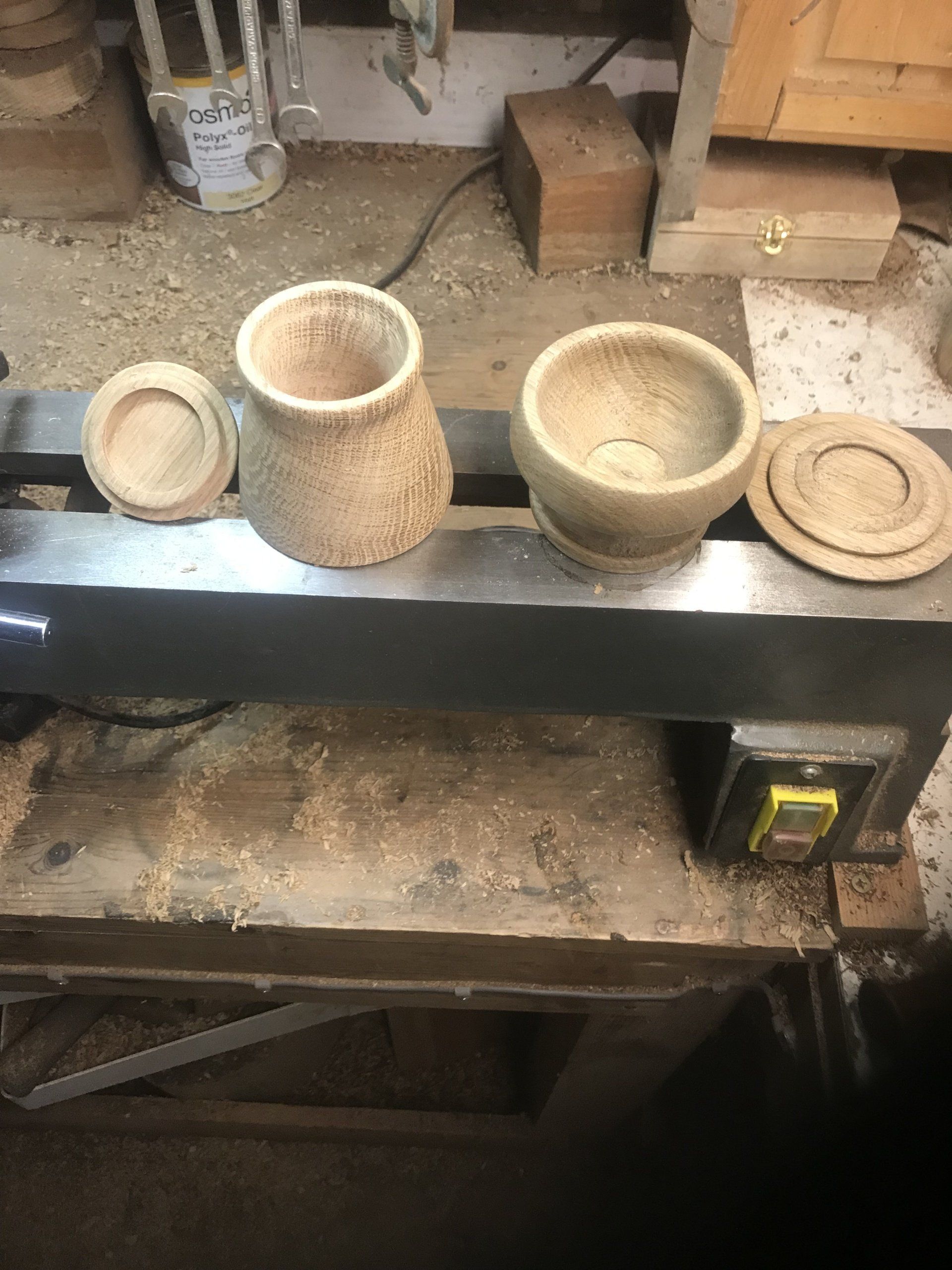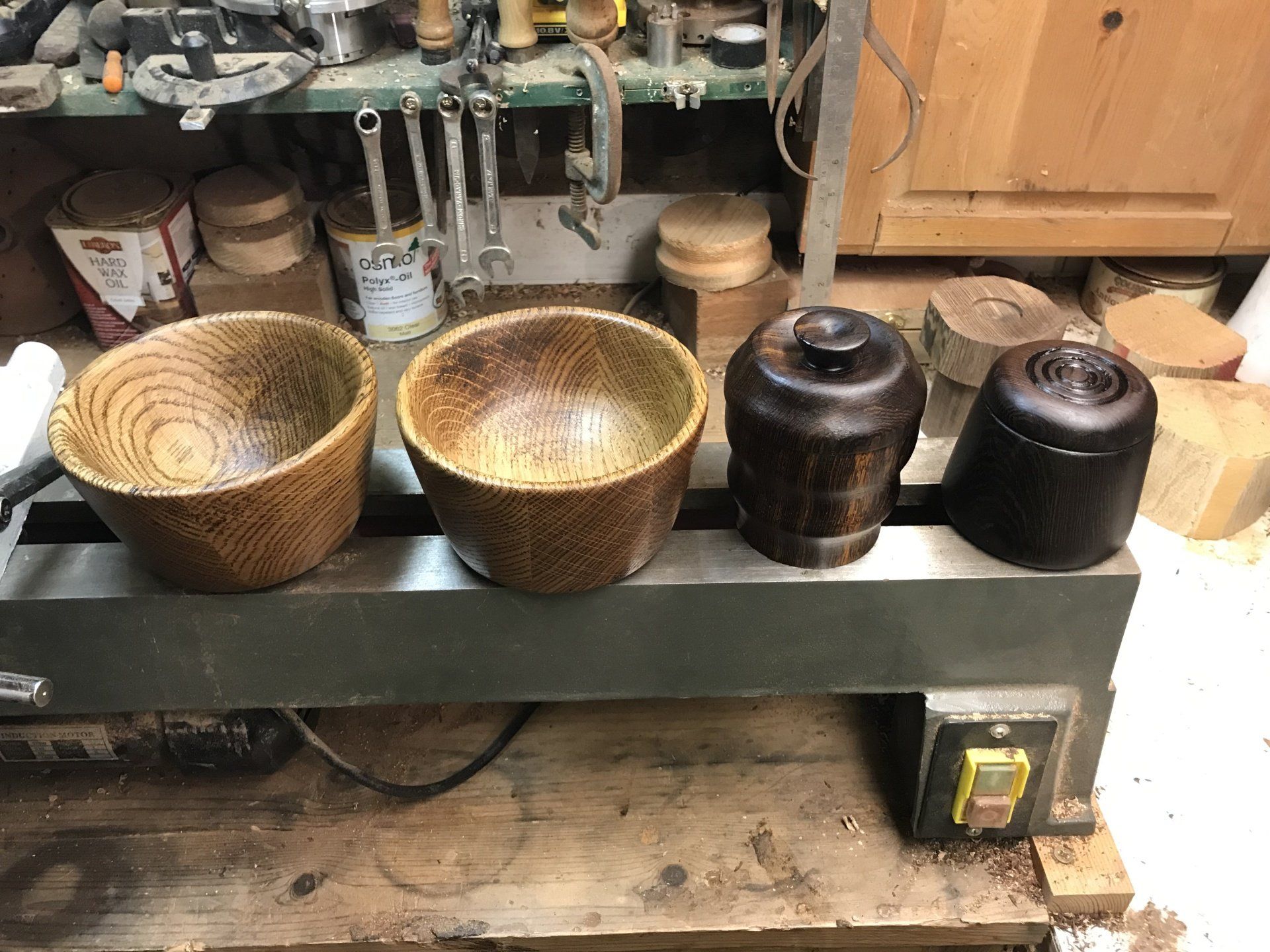 A selection of handmade Oak Bowls & Wooden Pots. All designed and crafted by Neil Costen. Can be Polished in Wax or Natural Oils.