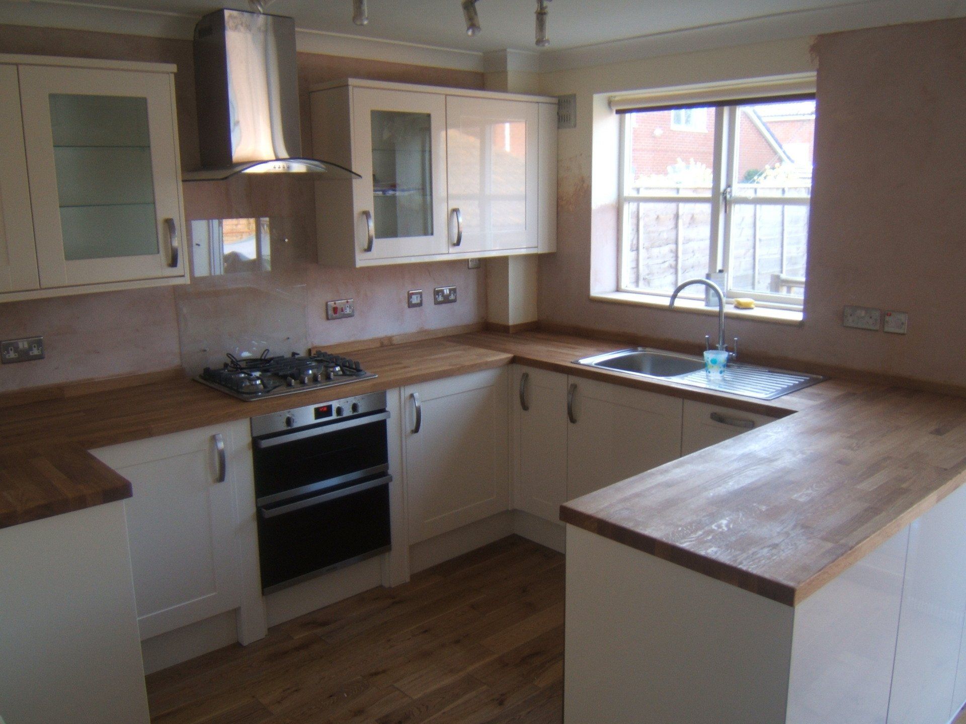A lovely installation with solid oak work tops. Plastered and installed by Costen Carpentry