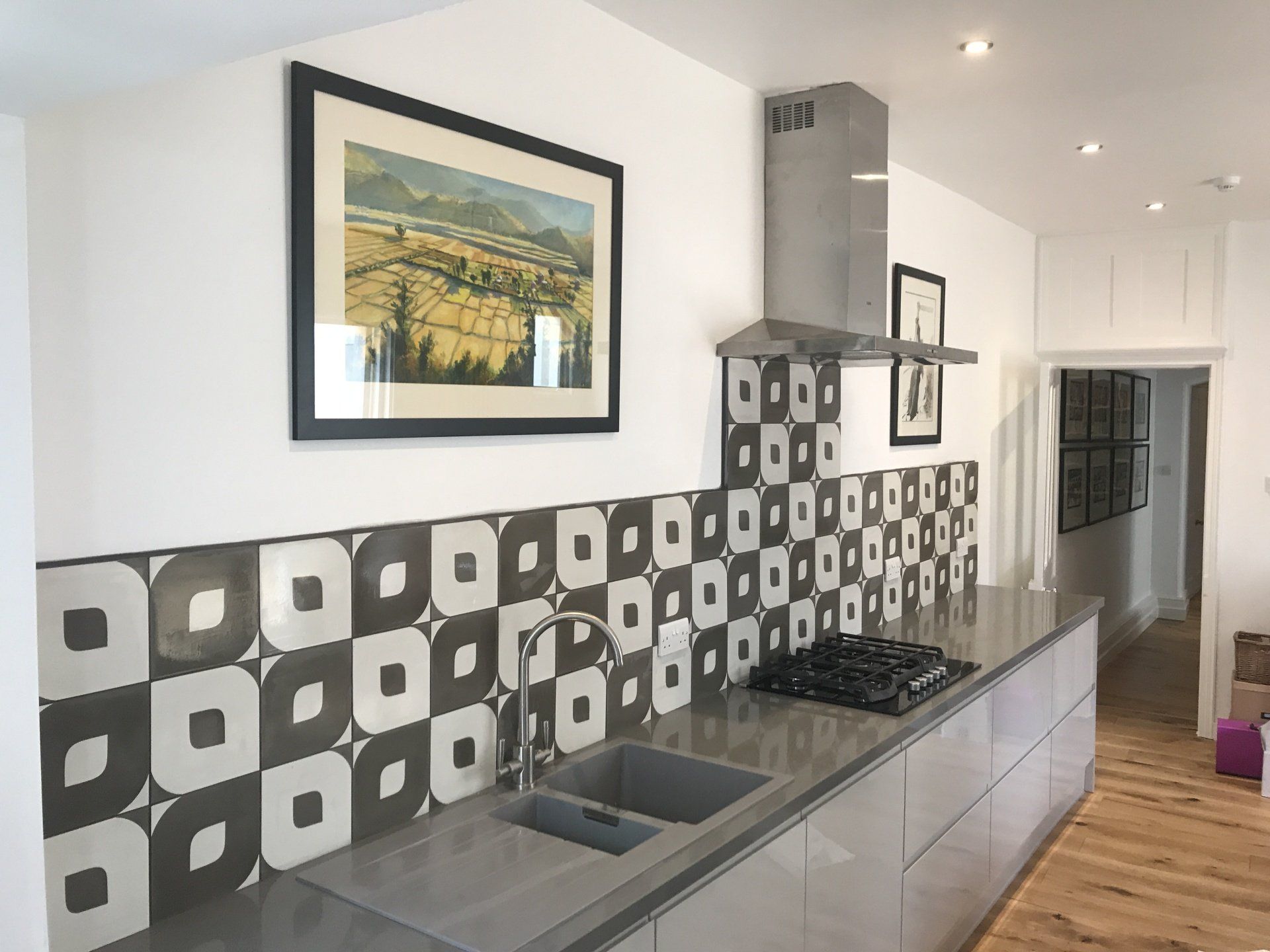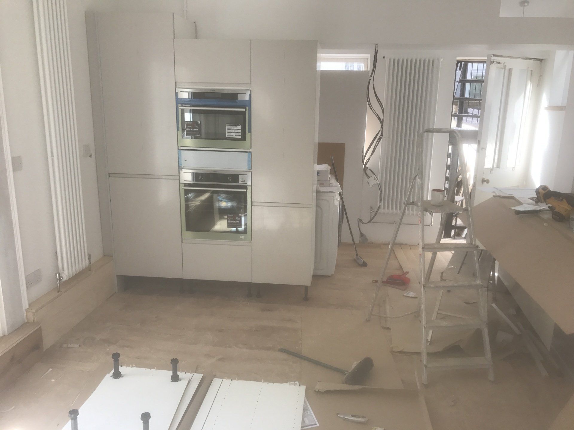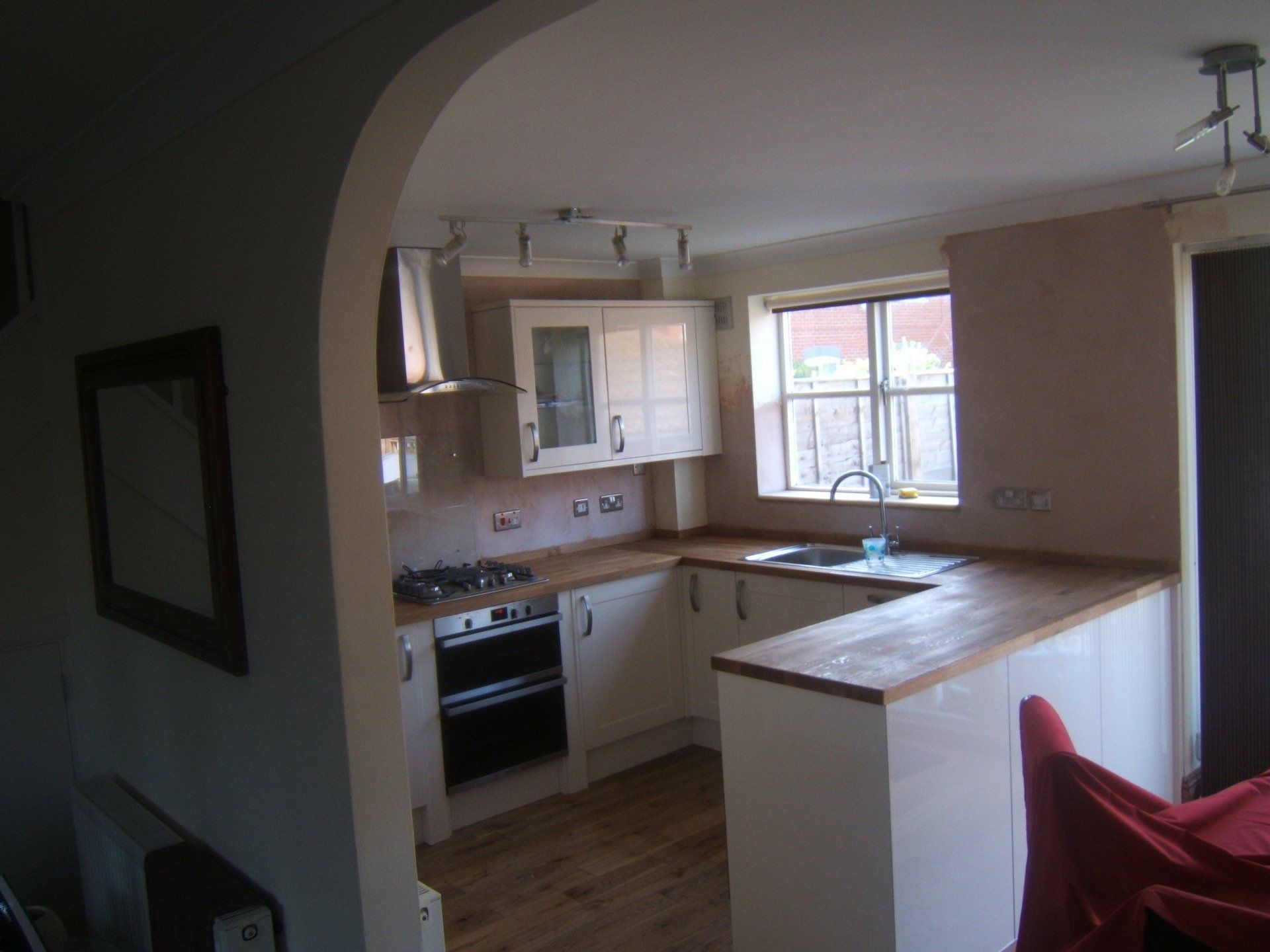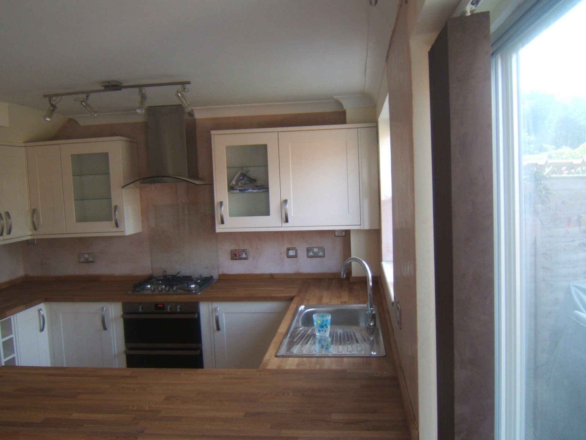 Below a modern kitchen installation after completing all the building work of wall removals, new steels, plastering and plumbing/electrical. Also a kitchen going into a newly made extension I had been working on.