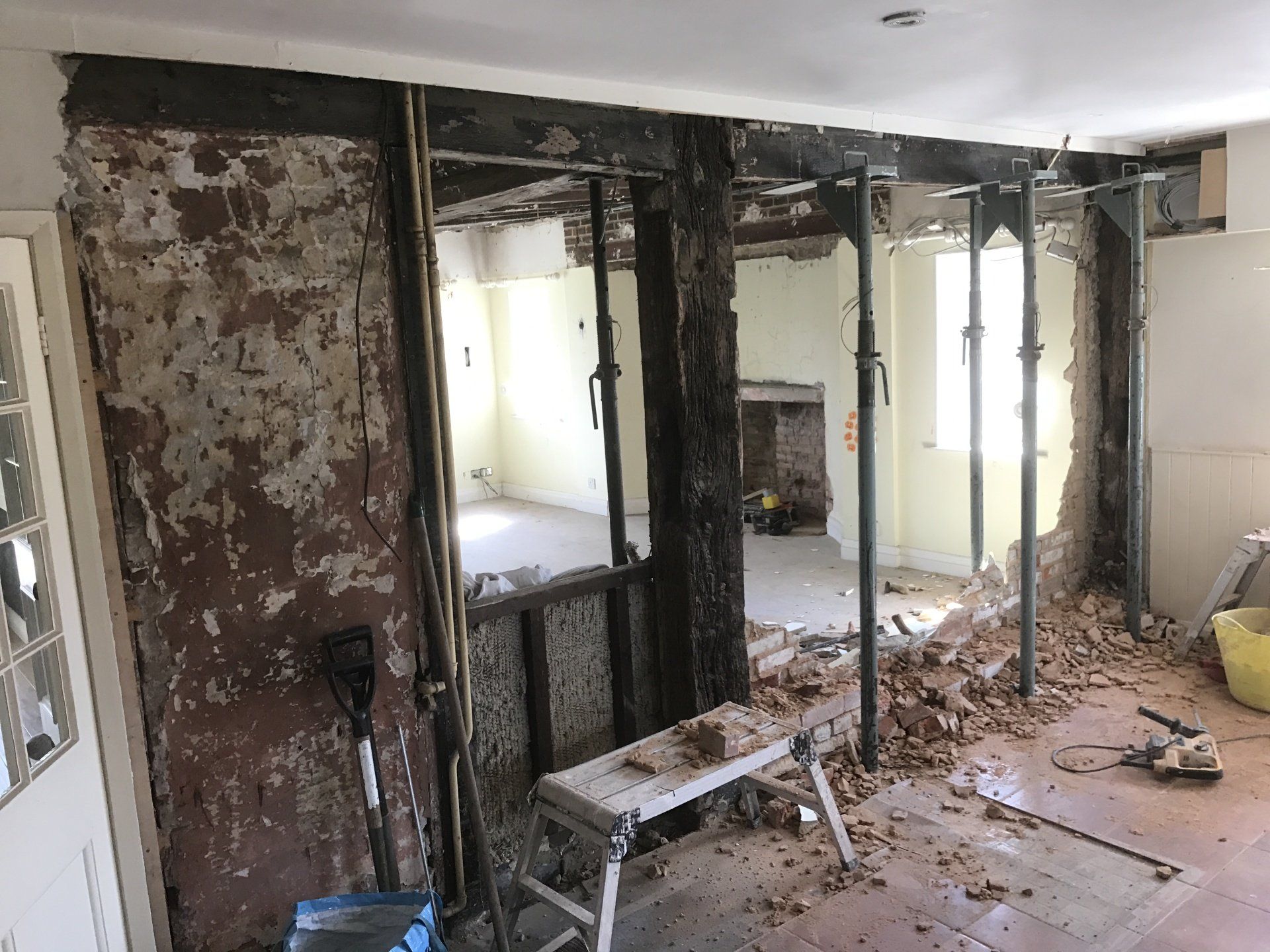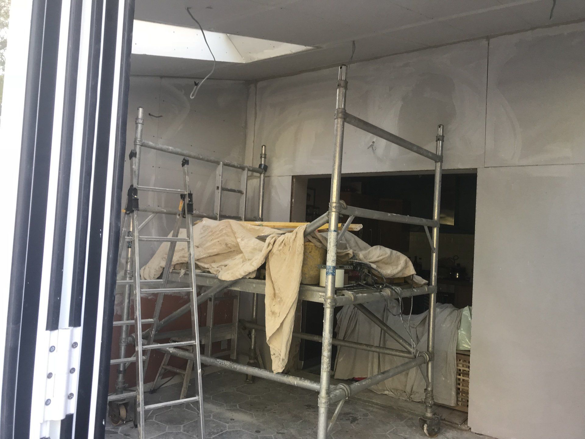 Below showing work being carried out for a kitchen installation after the extension was plastered